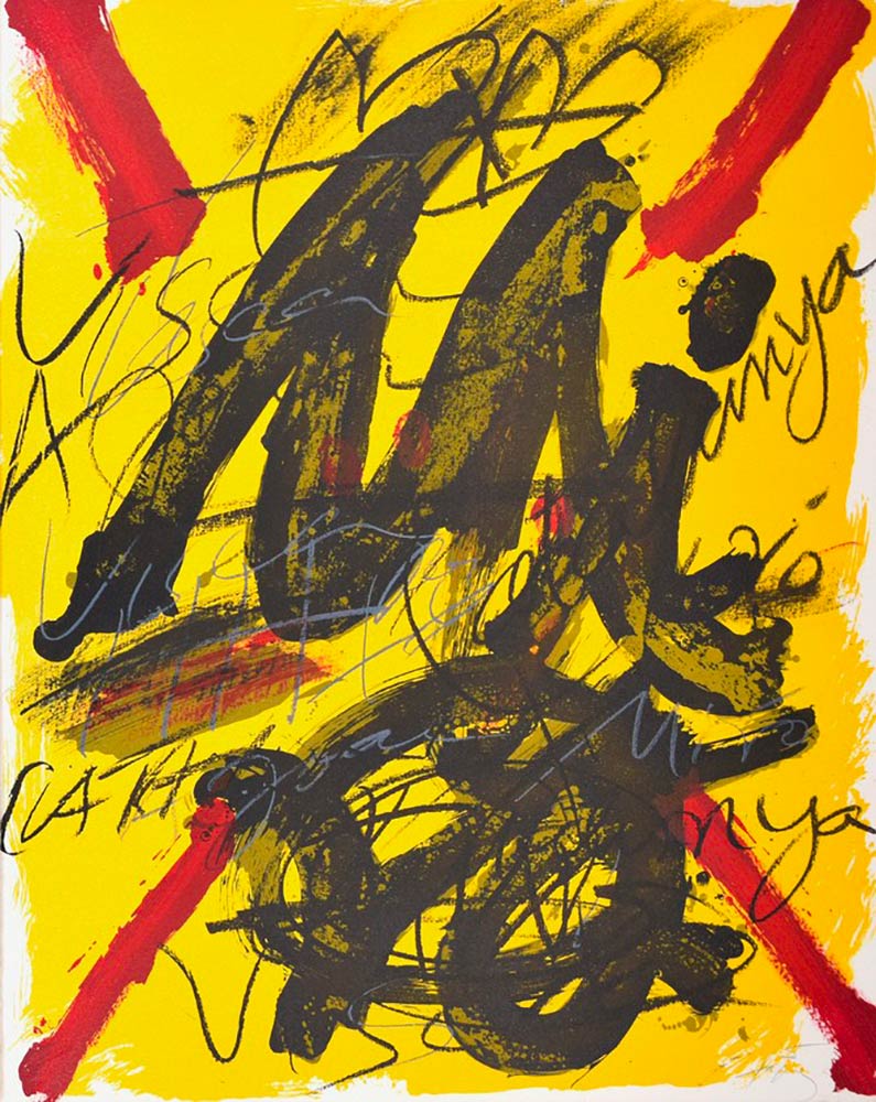 "Hommage à Joan Miró / L'émerveille merveilleux è una stampa colorata originale realizzata da Antoni Tapies nel 1973.