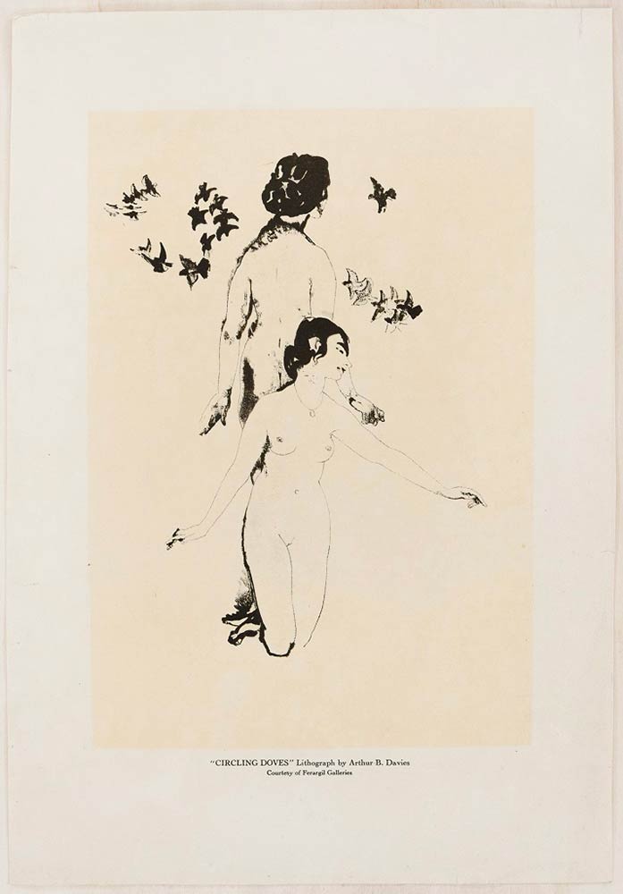 L'opera non è firmata e presenta, stampata sul margine inferiore al centro, la scritta "CIRCLIN DOVES Litografia di Arthur B. Davies / cortesia delle Ferrargil Galleries". Questa edizione è stata stampata dalla Galleria Ferrargil di New York, occupandosi principalmente di arte contemporanea americana, fondata nel 1915 e attiva fino al 1955.