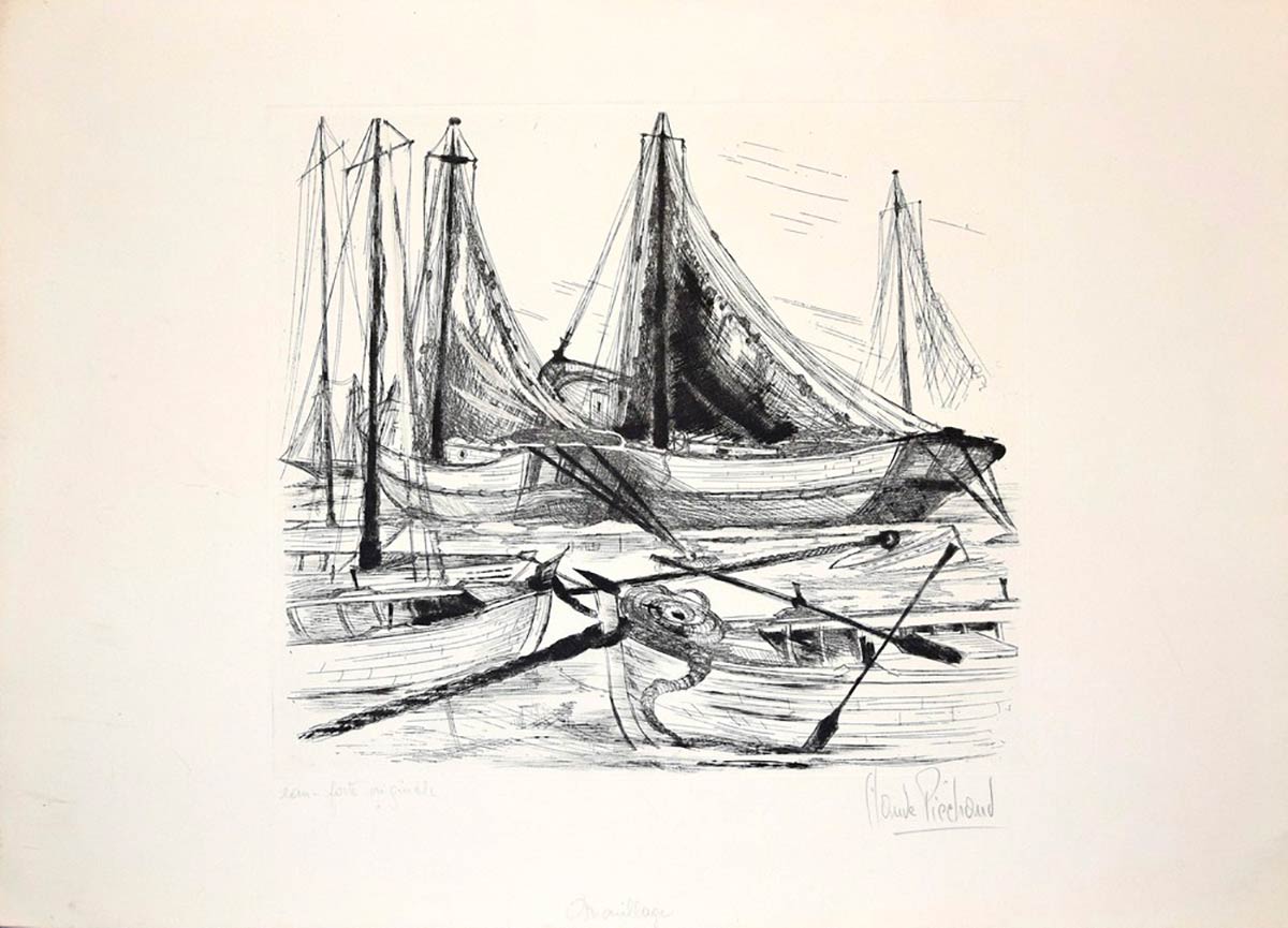 Port de Pêche is an original artwork realized by the French artist Claude Piechaud in the second half of the XX century.