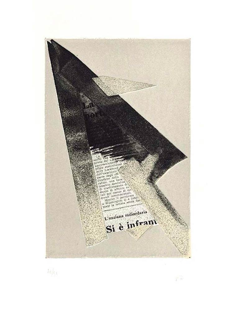 Acquaforte colorata e collage su carta, 49 x 34,5 cm