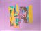 L'opera d'arte rappresenta un nudo femminile di profilo con una composizione astratta multicolore. Ci sono scatole colorate con linee verticali nere e uno sfondo viola.