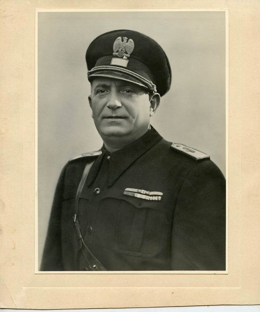 Ritratto di Roberto Farinacci (1892-1945) in divisa da gerarca. Stampa alla gelatina bromuro applicata a cartonato. Eccezionale