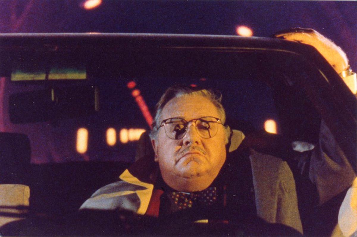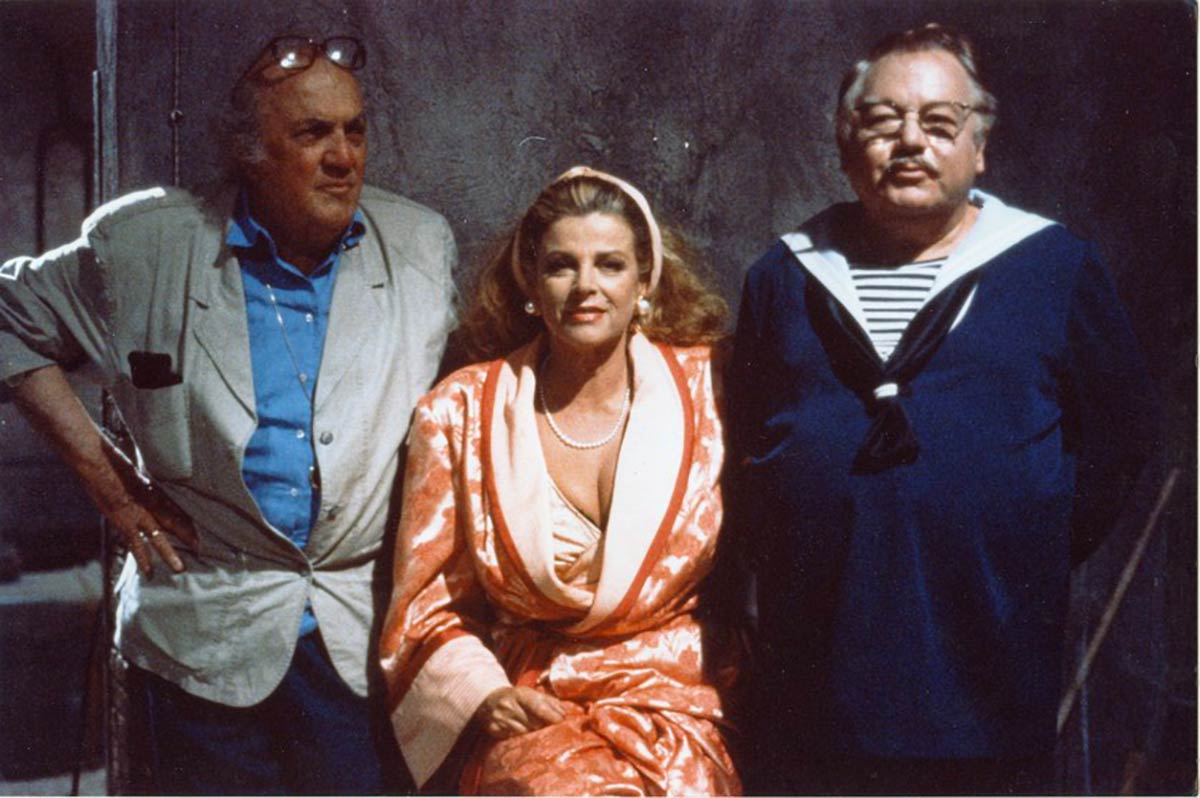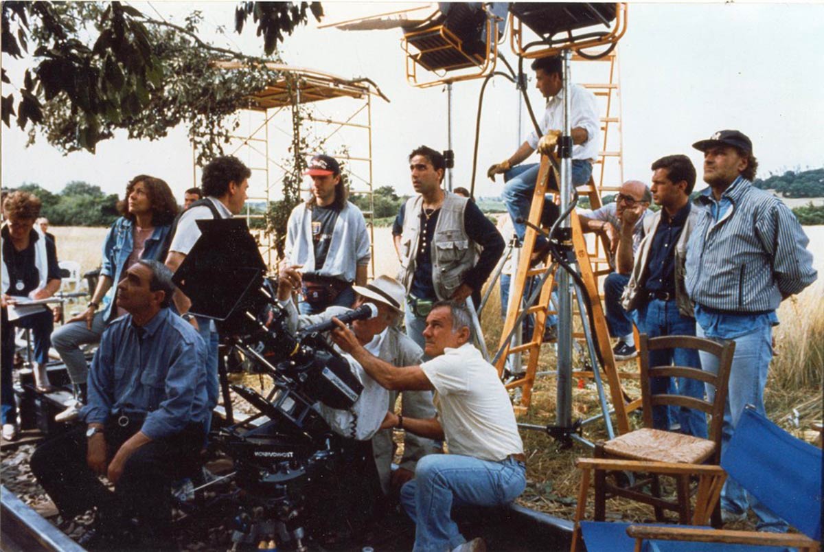 Lotto di dieci fotografie dal set dello spot per la Banca di Roma, ultimo lavoro di Federico Fellini, 1992. Stampa a colori su carta Kodak. Nelle foto: Federico Fellini, Paolo Villaggio, Fernando Rey, Anna Falchi, Michele Giovanni Di Castro, Ellen Rossi Stuart.