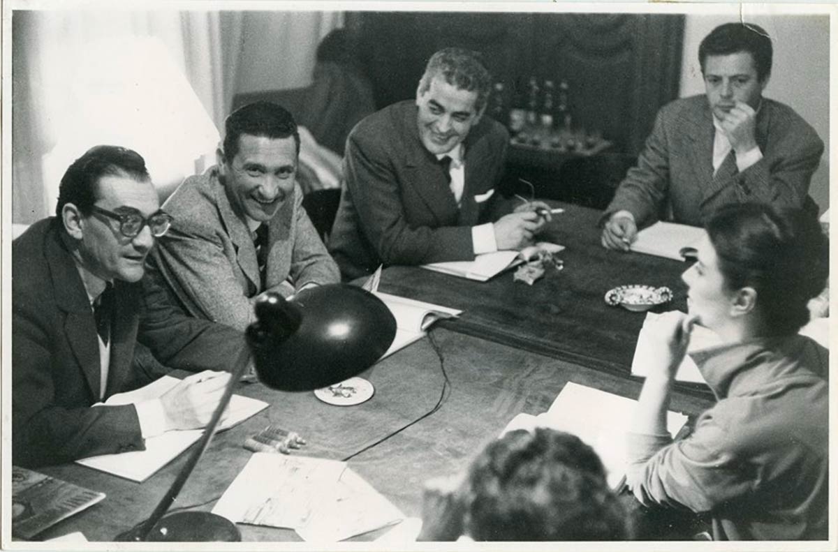 Marcello Mastroianni, Paolo Stoppa, Eleonora Rossi Drago e Luchino Visconti, 1955
