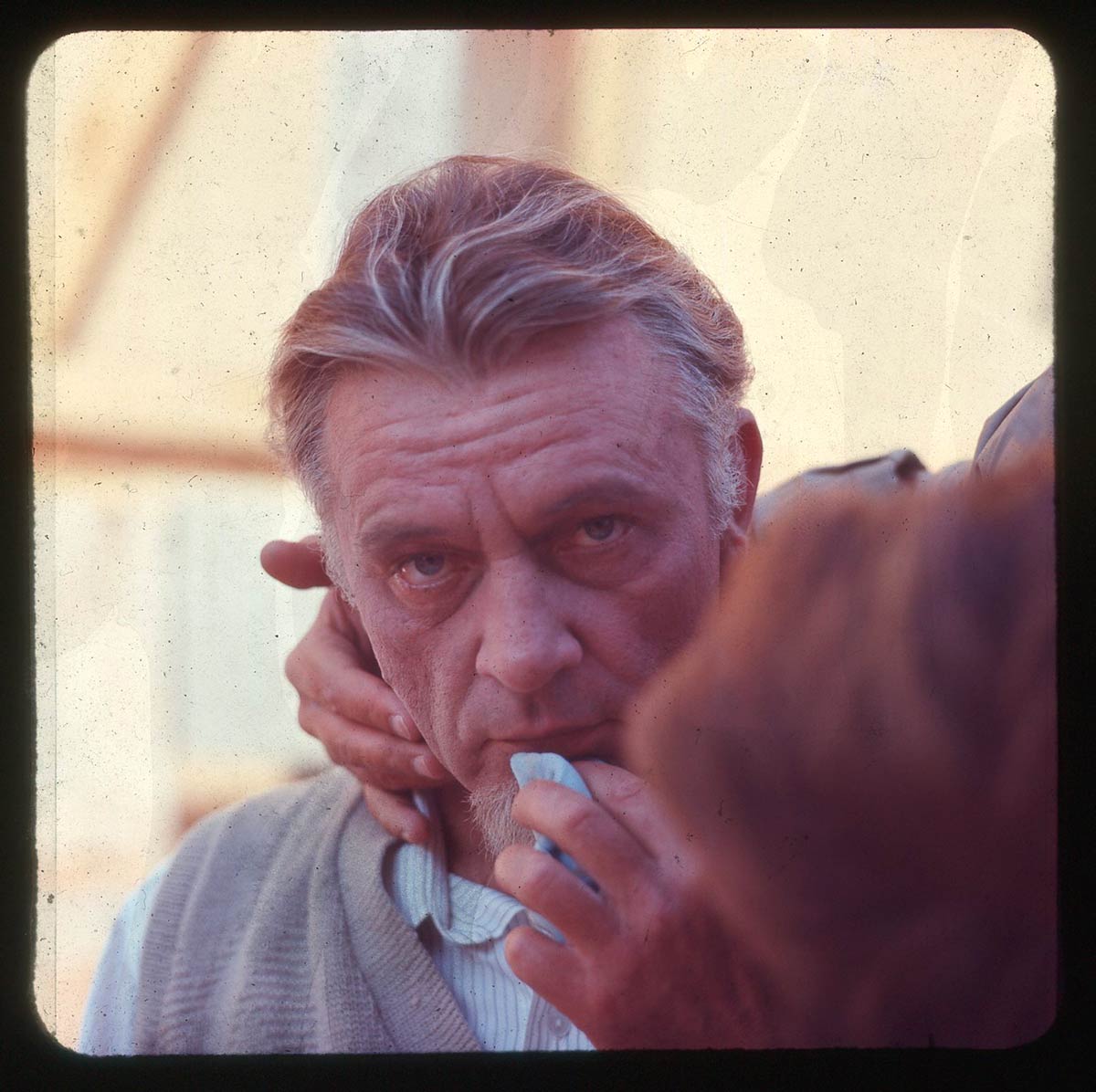 Richard Burton, lotto di tre diapostive a colori realizzate da Gianni Bozzacchi. Il lotto Comprende due diapositive 6 x 6 (Richard Burton e Joey Heattherton sul set e Richard Burton durante il trucco) e una 36 x 24 (Richard Burton con un pappagallino). Fotogrammi contenuti nella confezione d'agenzia ( Forum / Orion), condizioni visibili molto buone. Rarissime matrici d'autore, da questi fotogrammi è possibile realizzare ingrandimenti di altissima qualità