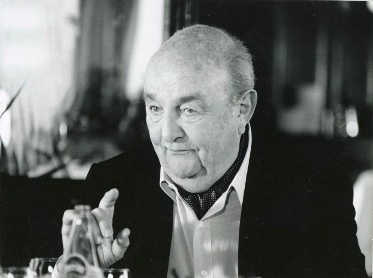Bernard Blier sul set del film “Una botta di vita”,1988. Stampa su carta monopolitenata, clichè al retro.