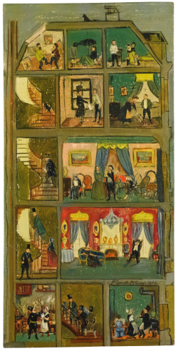 DAVID MCDERMOTT E PETER MCGOUGH N. 1952 E 1958 VILLA VOLPICELLI signed and inscribed; signed and inscribed on the reverse, oil on canvas. Executed in 1986 firmato e iscritto; firmato e iscritto sul retro olio su tela cm 92x45,5 Eseguito nel 1986 PROVENANCE Galleria Lucio Amelio, Napoli