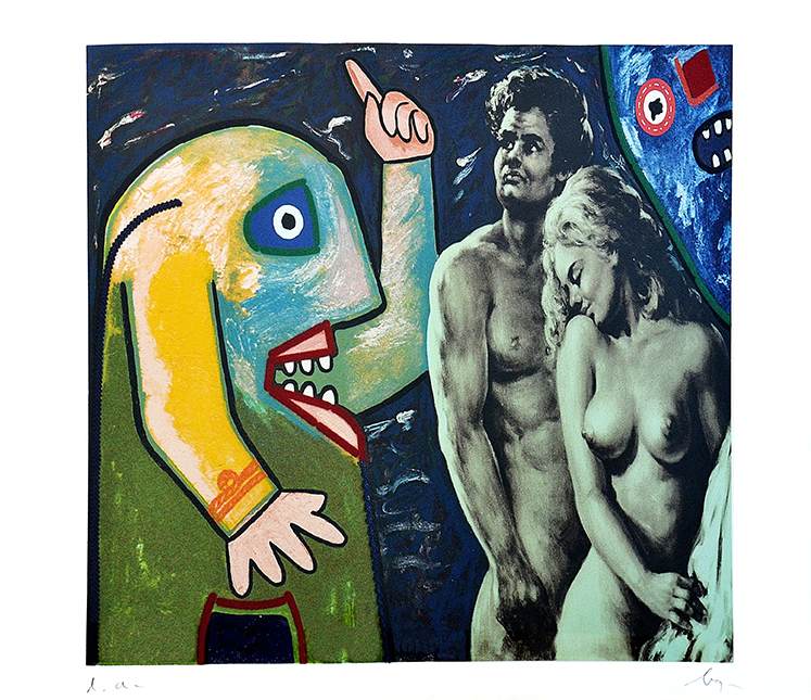 Tiratura in basso a sinistra, firma in basso a destra, timbro a secco