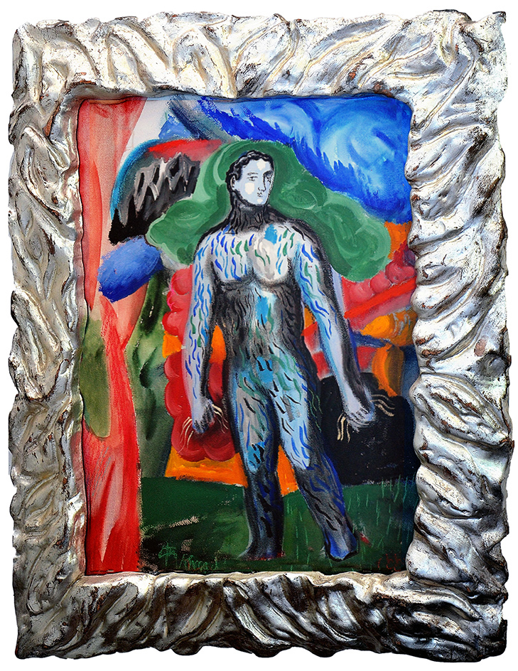 Opera incorniciata con cornice d'artista, dimensioni esterne cornice 122x100