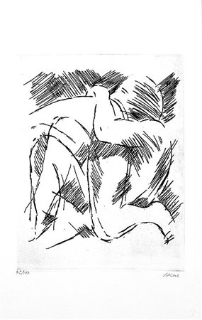 Tiratura in basso a sinistra, firma e timbro a secco in basso a destra