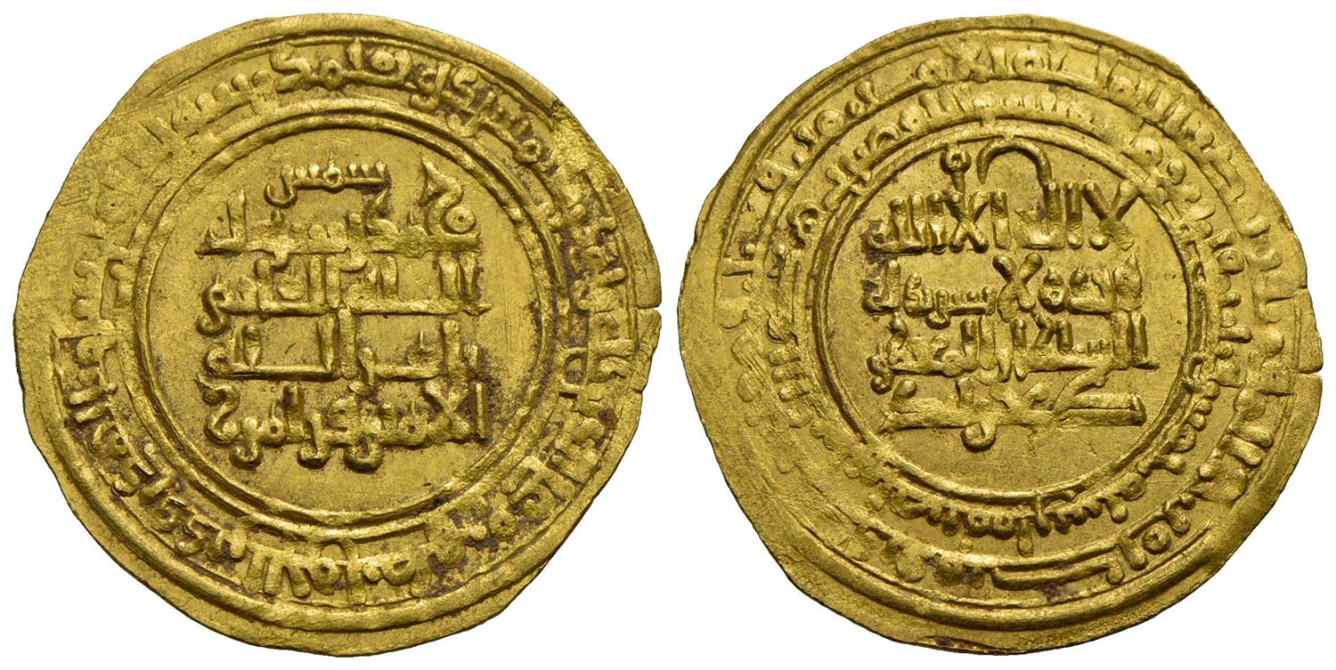 IMPERO ABBASIDE - Zahir al din Abu Mansur Faramarz (1041-1051) - Dinar - (AU g. 3,58) R Mitchiner 620 Con cartellino manoscritto del collezionista anni '60 e cartellino di provenienza L. Simonetti