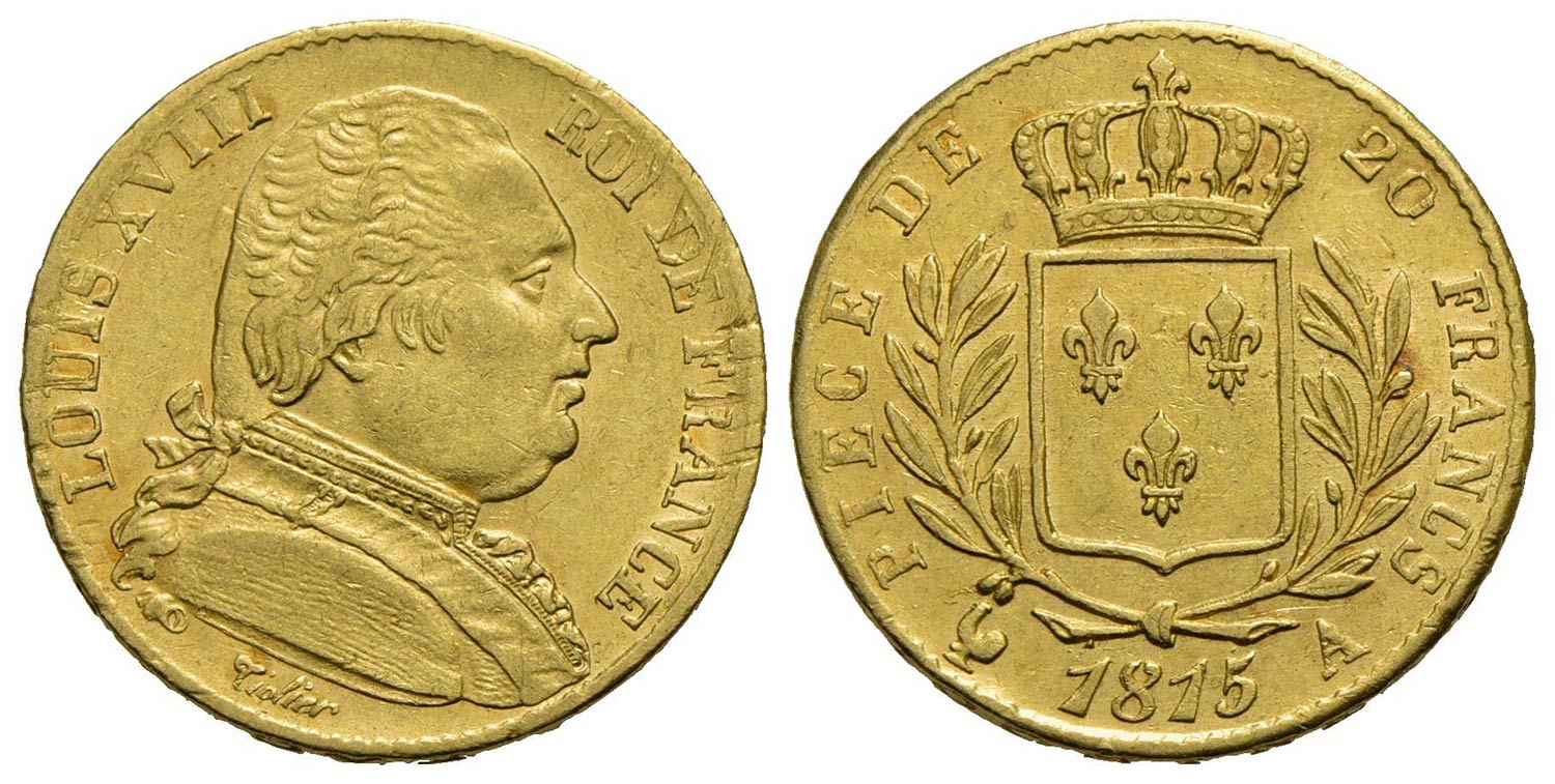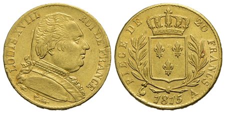 FRANCIA - Luigi XVIII (1814-1824) - 20 Franchi - 1815 A - AU Kr. 706.1<br>SPL+