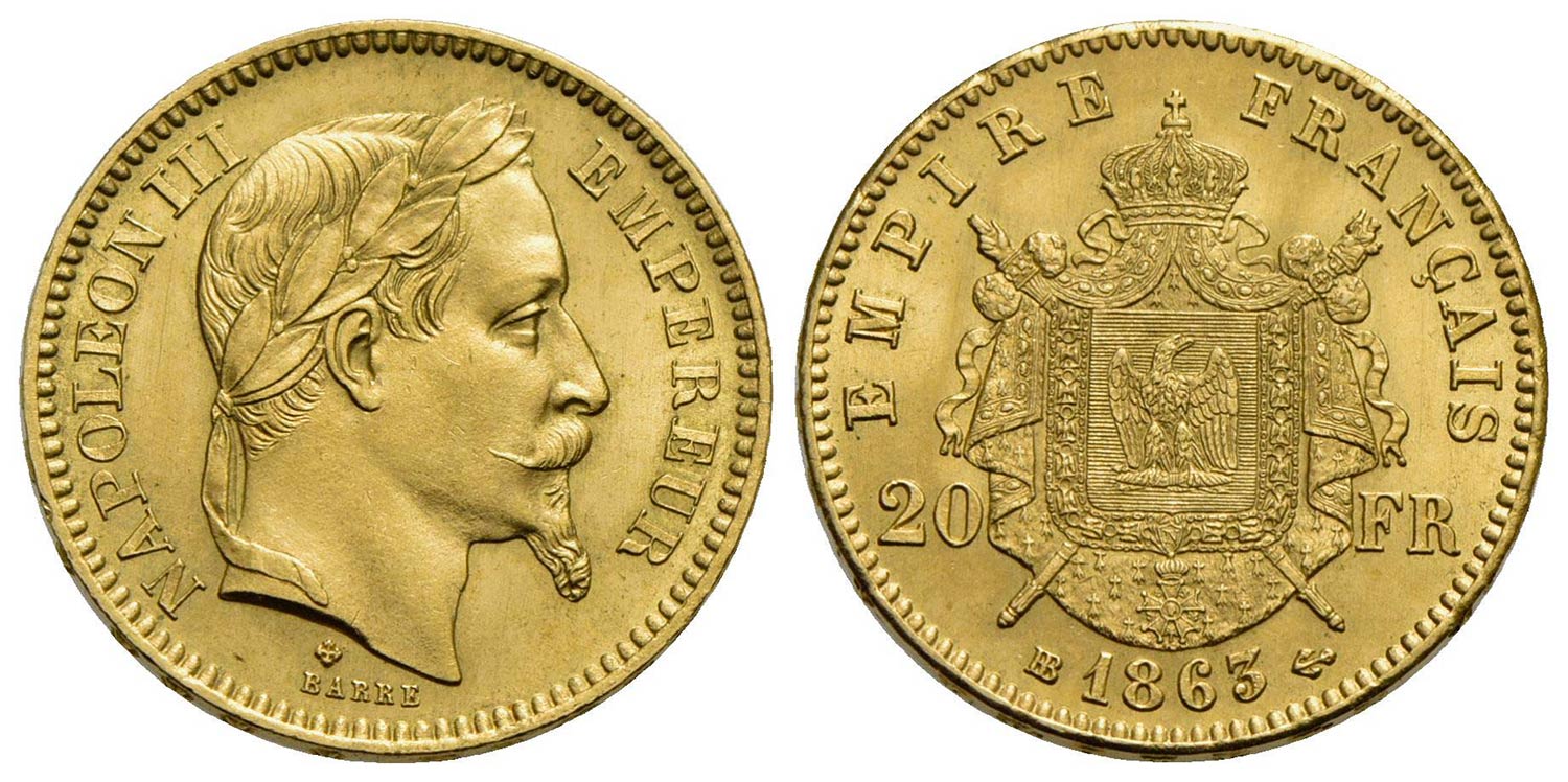 Lotto 110 | FRANCIA - Napoleone III (1852-1870) - 20 Franchi - 1863 BB - Testa laureata - AU Kr. 801.2<br>FDC