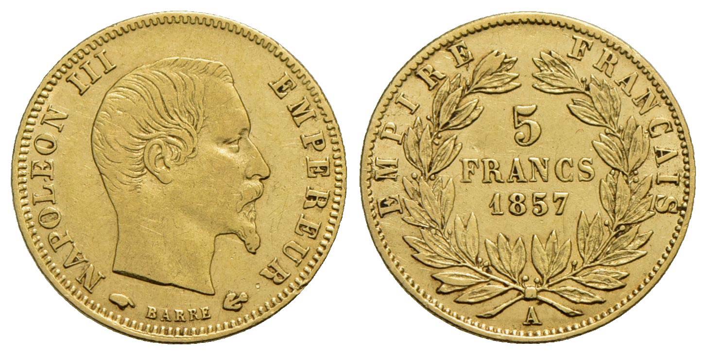 FRANCIA - Napoleone III (1852-1870) - 5 Franchi - 1857 A - Testa nuda - AU Kr. 787.1