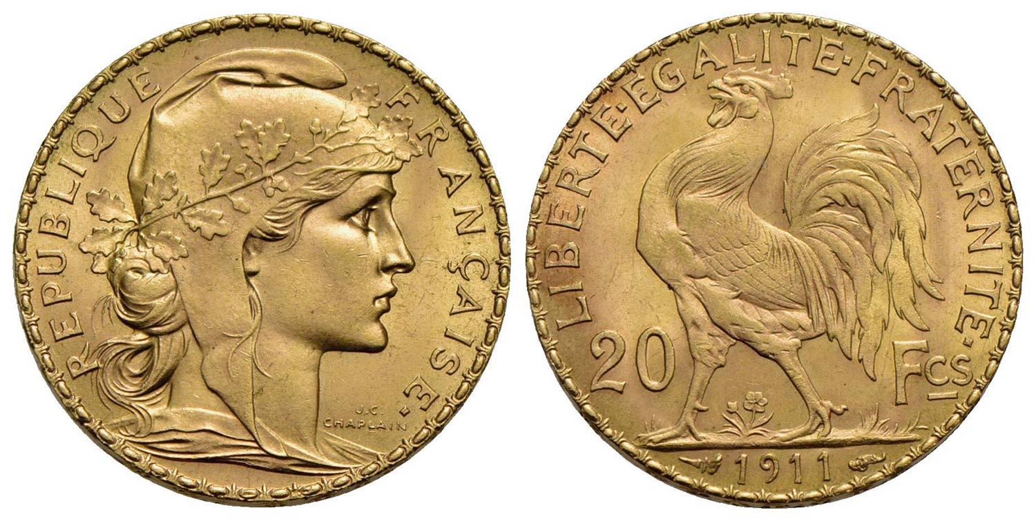 Lotto 118 | FRANCIA - Terza Repubblica (1870-1940) - 20 Franchi - 1911 - AU Kr. 847<br>FDC