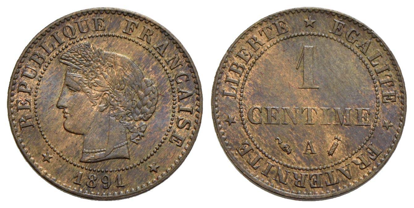 FRANCIA - Terza Repubblica (1870-1940) - Centesimo - 1891 A - CU Kr. 826.1
