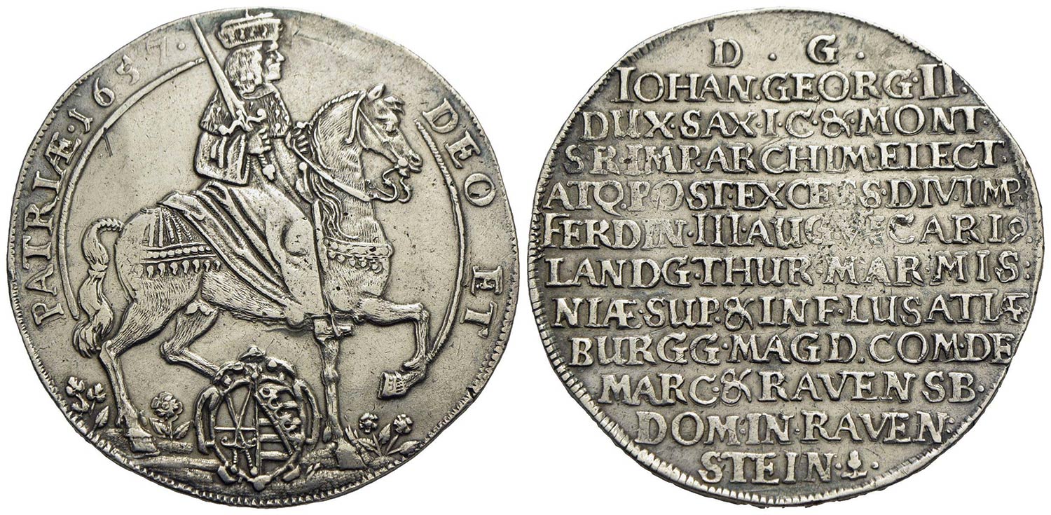 GERMANIA - SASSONIA - Johann Georg II (1656-1680) - Tallero - 1657 - AG R Kr. 481; Dav. 7630 Commemora la morte dell'Imperatore del Sacro Romano Impero Ferdinando III.