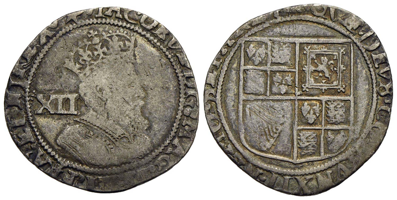 GRAN BRETAGNA - Giacomo I (1603-1625) - Scellino - Busto coronato a d., dietro XII - R/ Stemma - (AG g. 4,66) Kr. 26