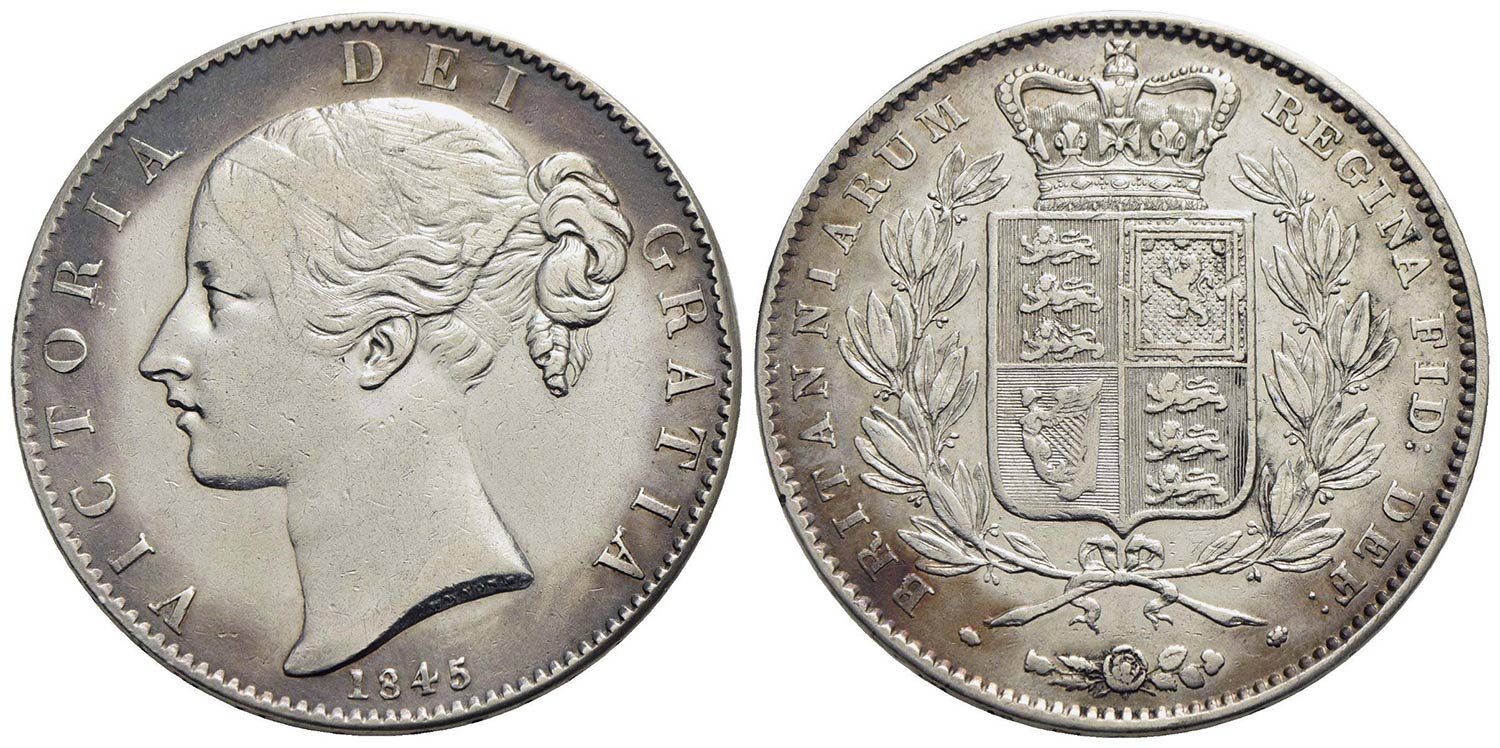 GRAN BRETAGNA - Vittoria (1837-1901) - Corona - 1845 - AG R Kr. 741 Principio di patina<br>BB+/qSPL