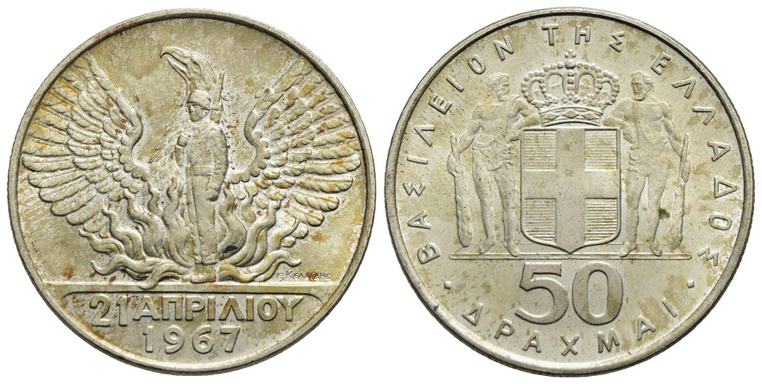 Lotto 175 | GRECIA - Costantino II (1964-1973) - 50 Dracme - 1967 - AG Kr. 93<br>FDC