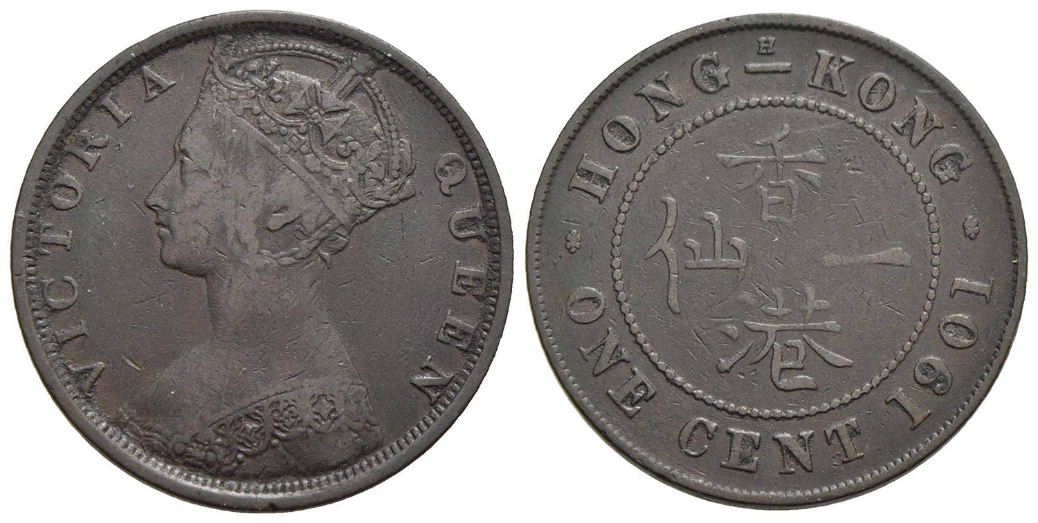 HONG KONG - Vittoria (1837-1901) - Centesimo - 1901 - Cu Kr. 4.3<br>BB+