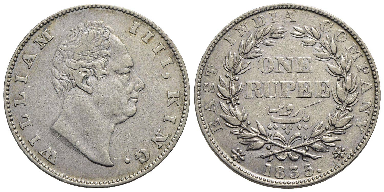 Lotto 182 | INDIA BRITANNICA - Guglielmo IV (1830-1837) - Rupia - 1835 - AG Kr. 450.3 F in incuso sul collo<br>B