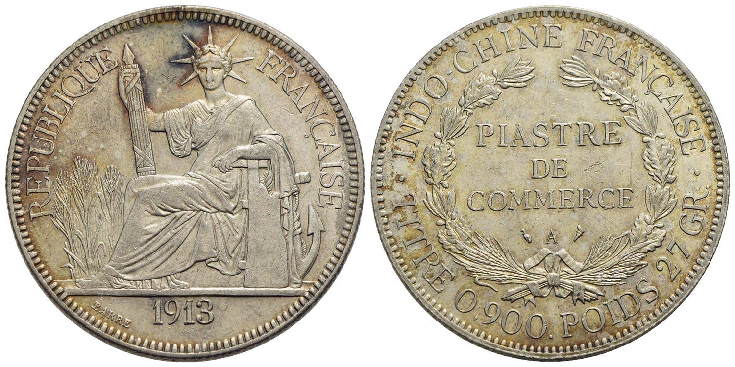 INDOCINA FRANCESE - Terza Repubblica (1870-1940) - Piastra - 1913 A - AG Kr. 5a.1<br>SPL+/qFDC