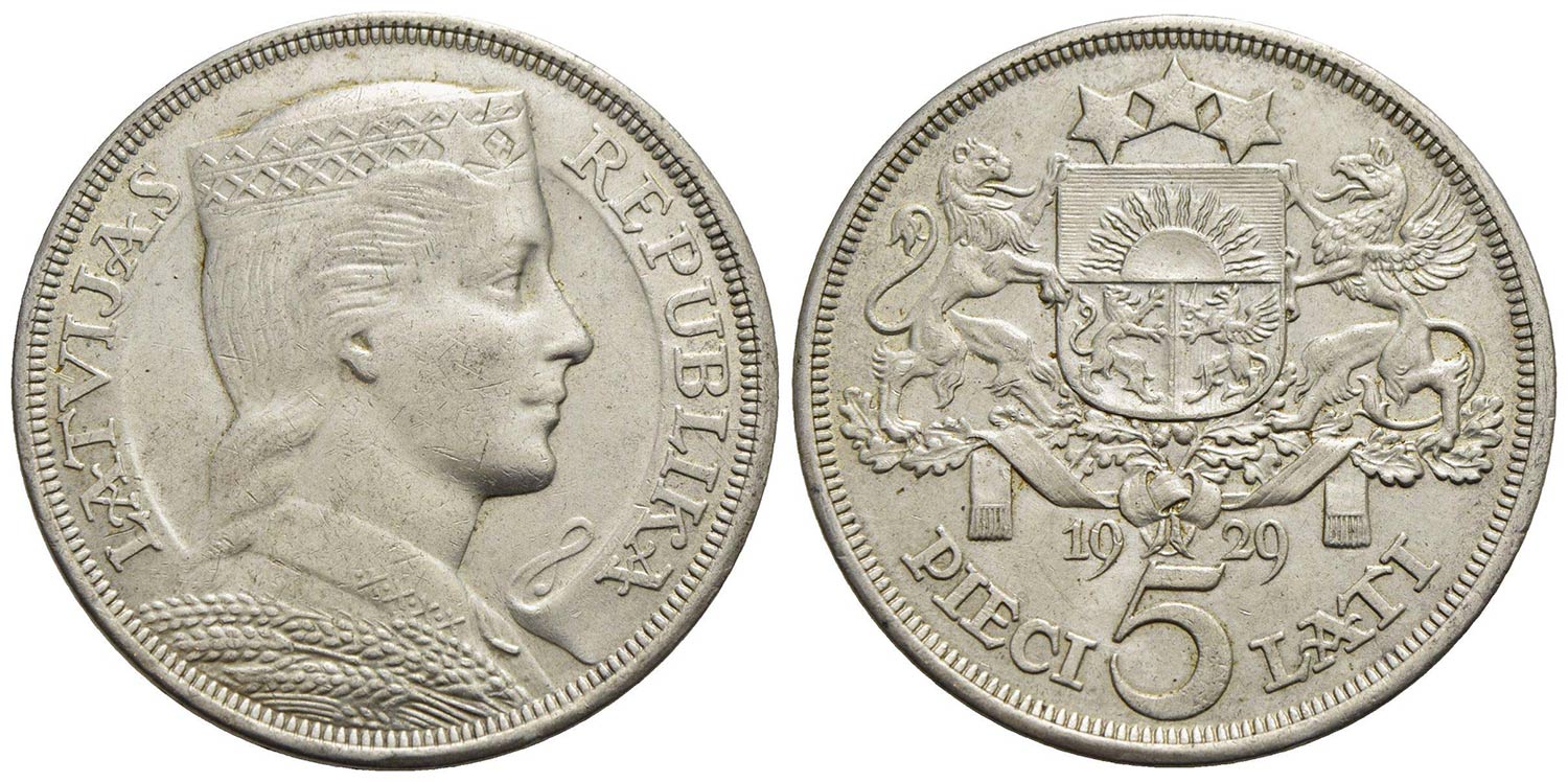 LETTONIA - Repubblica - 5 Lati - 1929 - AG Kr. 9