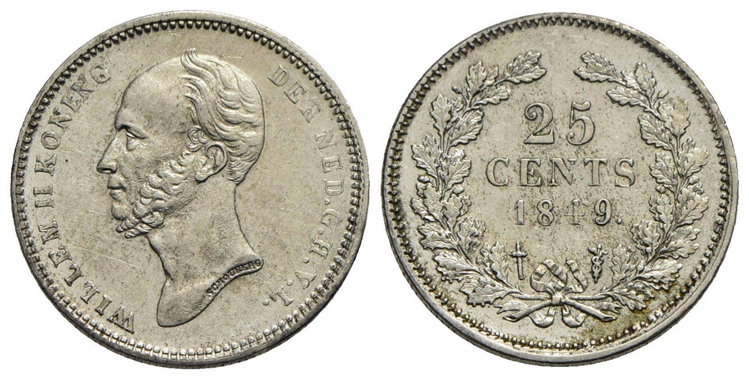 OLANDA - Guglielmo II (1840-1849) - 25 Centesimi - 1849 - AG R Kr. 76<br>SPL/qFDC
