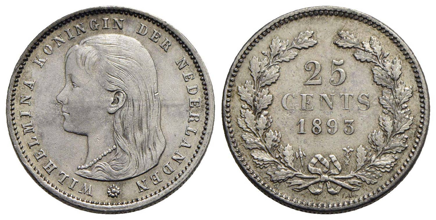 OLANDA - Guglielmina (1890-1948) - 25 Centesimi - 1893 - AG R Kr. 115 Segnetti