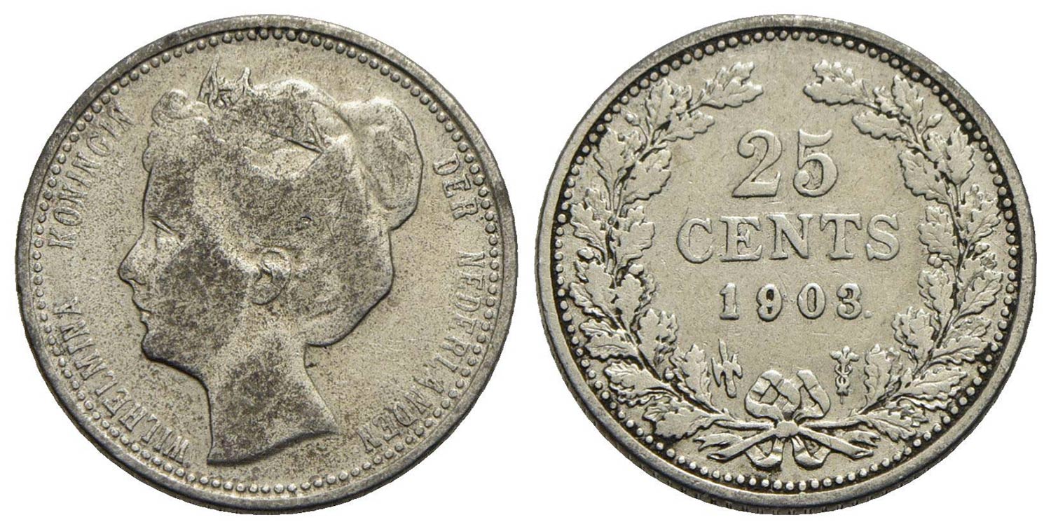 OLANDA - Guglielmina (1890-1948) - 25 Centesimi - 1903 - AG Kr. 120.2<br>qBB