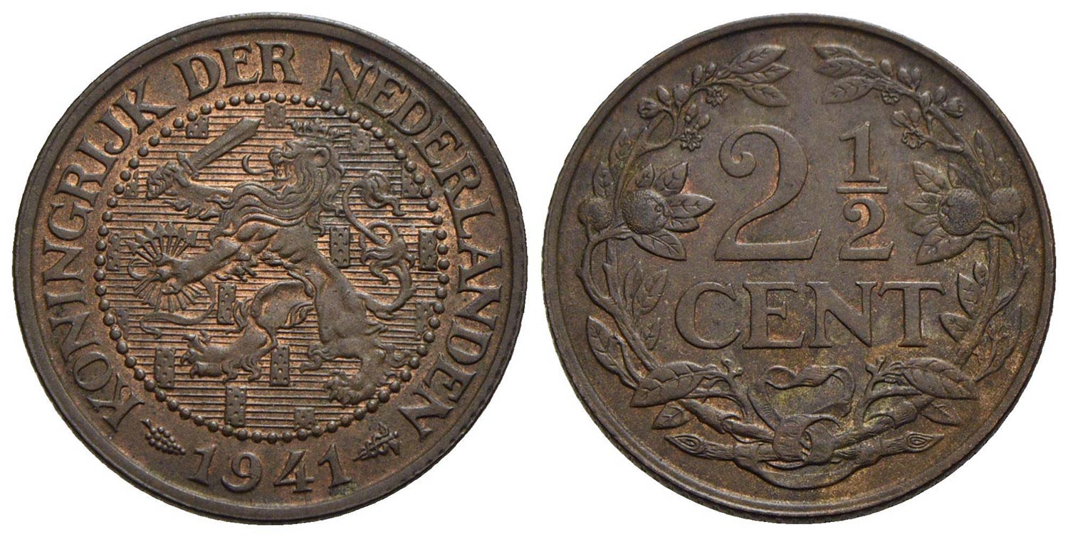OLANDA - Guglielmina (1890-1948) - 2,5 Centesimi - 1941 - CU Kr. 150