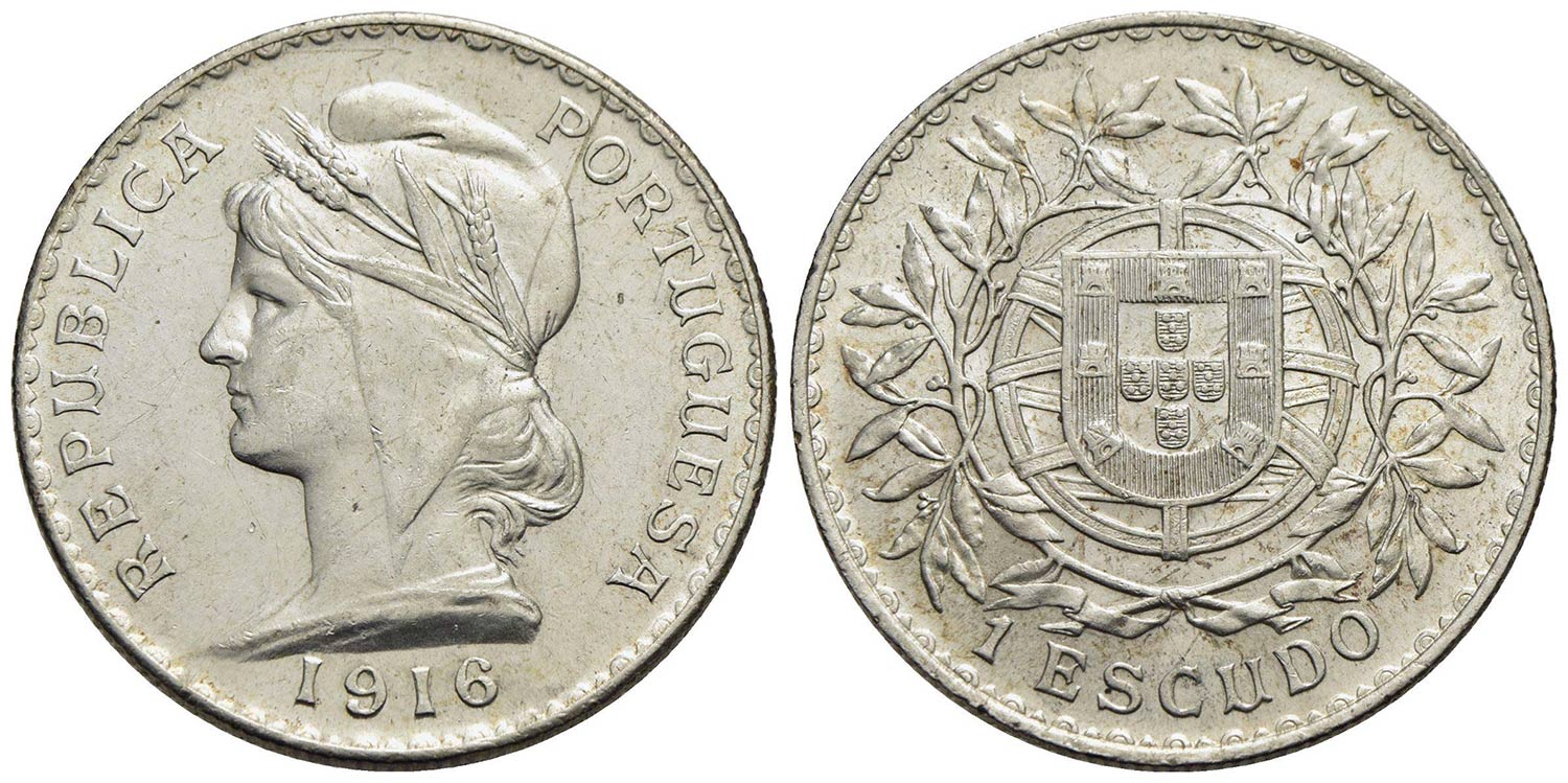 PORTOGALLO - Repubblica (1910) - Escudo - 1916 - AG Kr. 564