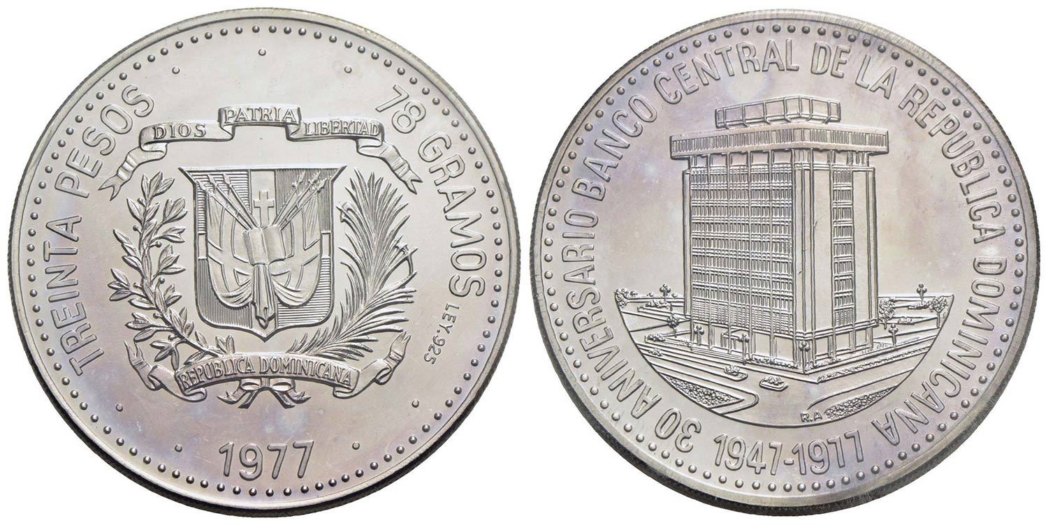 Lotto 258 | REPUBBLICA DOMENICANA - Repubblica (1866) - 30 Pesos - 1977 - 30° Banco Central - AG Kr. 46 In busti