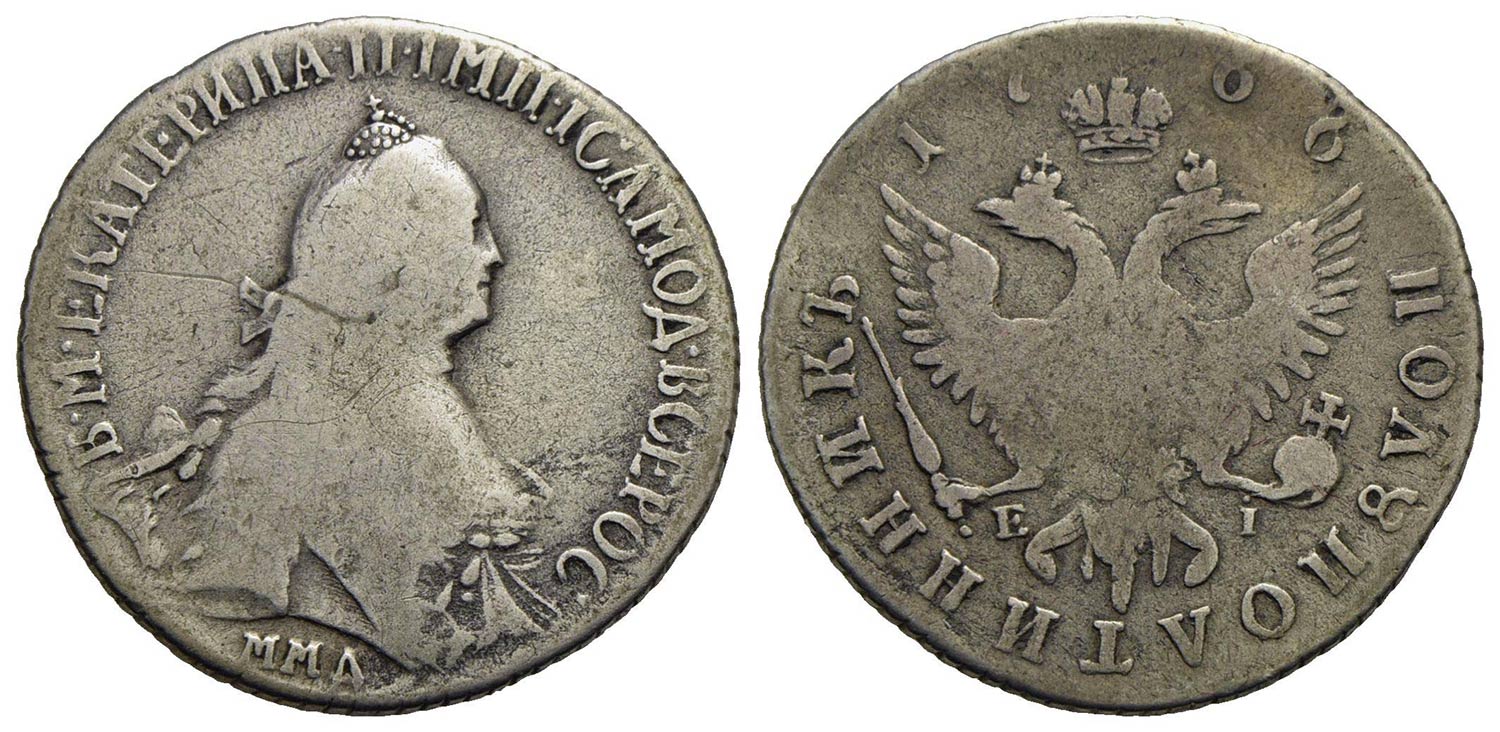 Lotto 262 | RUSSIA - Caterina II (1762-1796) - 1/4 di Rublo - 1766 - AG R Kr. 65<br>MB+