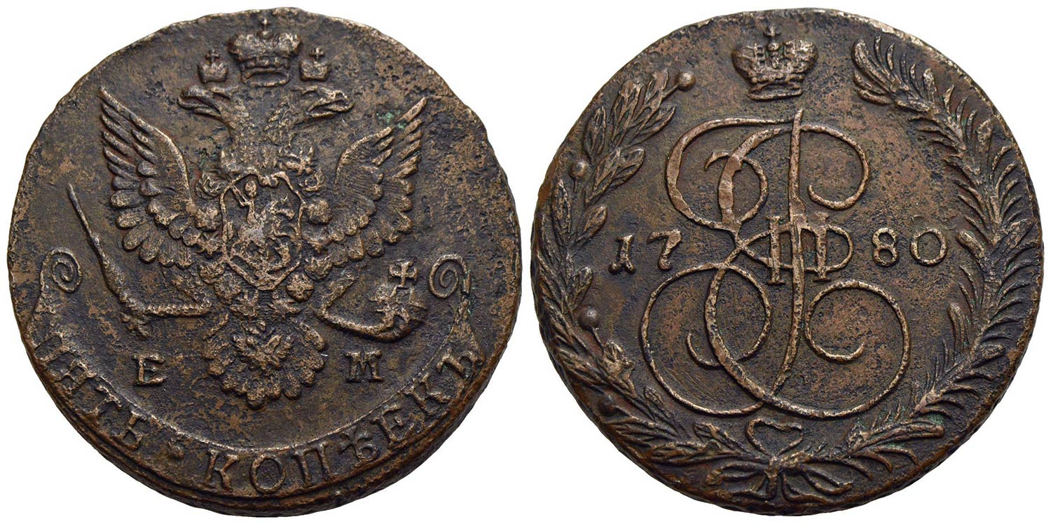 RUSSIA - Caterina II (1762-1796) - 5 Copechi - 1780 EM - CU Kr. 59.3