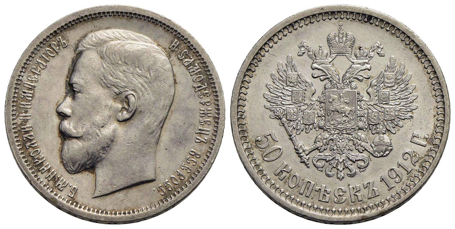 RUSSIA - Nicola II (1894-1917) - 50 Copechi - 1912 - AG Kr. 58.2<br>SPL+/qFDC