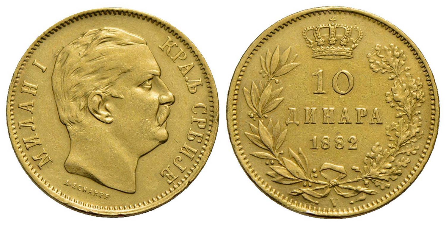 SERBIA - Milan Obrenovich IV (1868-1889) - 10 Dinari - 1882 - AU Kr. 16