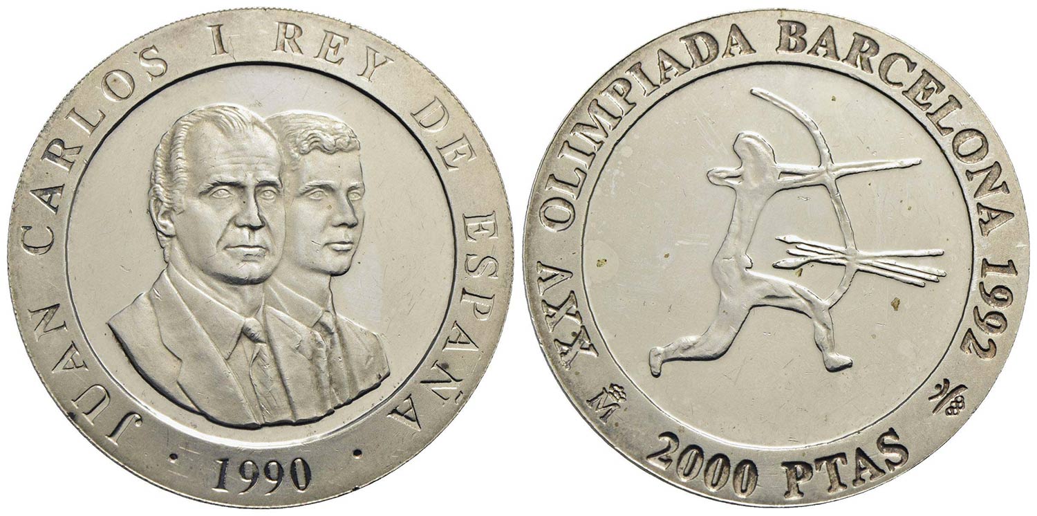 Lotto 287 | SPAGNA - Juan Carlos (1975-2014) - 2.000 Pesetas - 1990 - Olimpiadi 1992 - AG Kr. 859 Proof<br>FDC