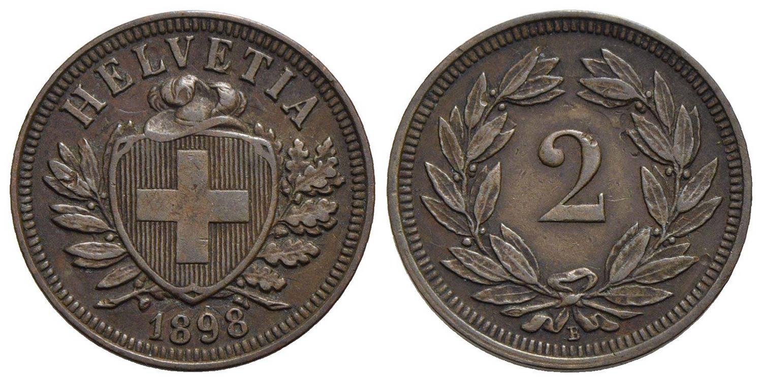Lotto 307 | SVIZZERA - Confederazione - 2 Rappen - 1898 B - BR R Kr. 4.2<br>BB+