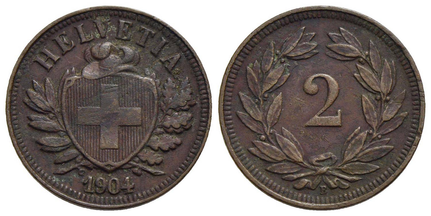 SVIZZERA - Confederazione - 2 Rappen - 1904 B - BR Kr. 4.2<br>BB