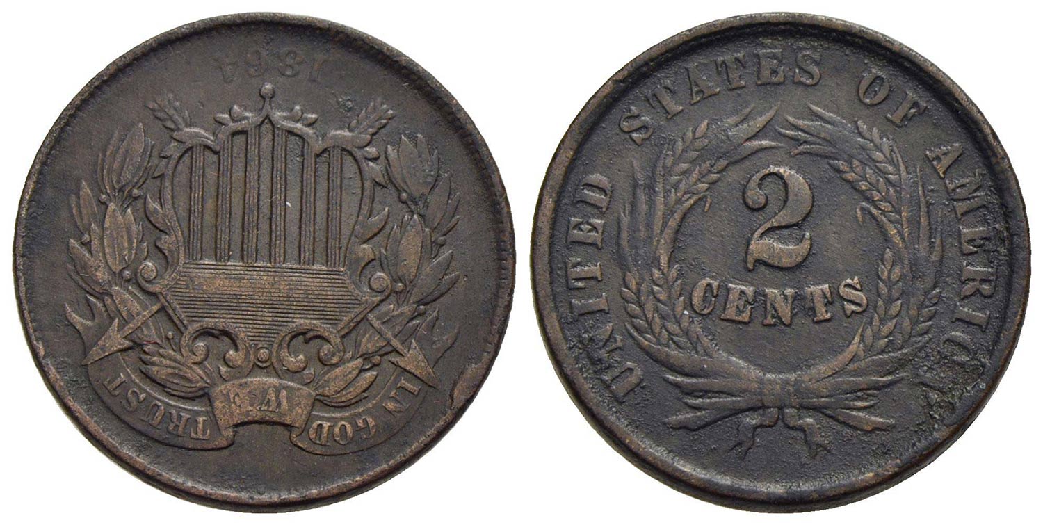 U.S.A. - 2 Centesimi - 1864 - CU R Kr. 94<br>BB+