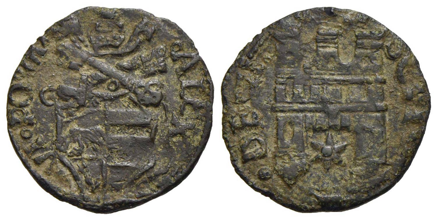 ASCOLI - Alessandro VI (1492-1503) - Quattrino - Stemma - R/ Stemma - (CU g. 1,76) R CNI 1; Munt. 28
