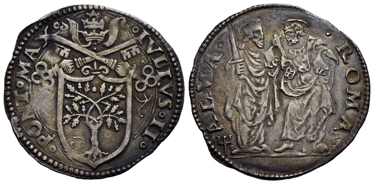 Lotto 347 | ROMA - Giulio II (1503-1513) - Giulio - Stemma a targa semiovale - R/ Figure affrontate di San Pietr