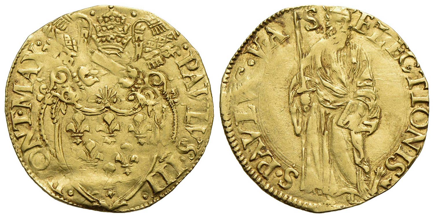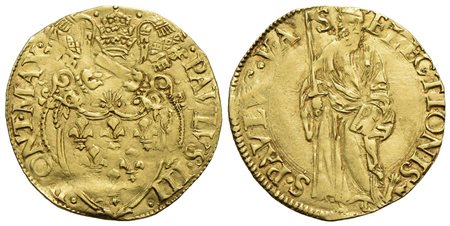 ROMA - Paolo III (1534-1549) - Scudo d'oro - Stemma semiovale, cimasa con palmetta - R/ Figura del S