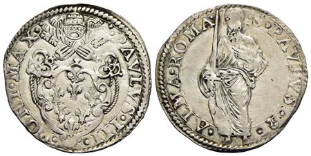 ROMA - Paolo III (1534-1549) - Paolo - Stemma a targa - R/ San Paolo con libro chiuso - (AG g. 3,3)