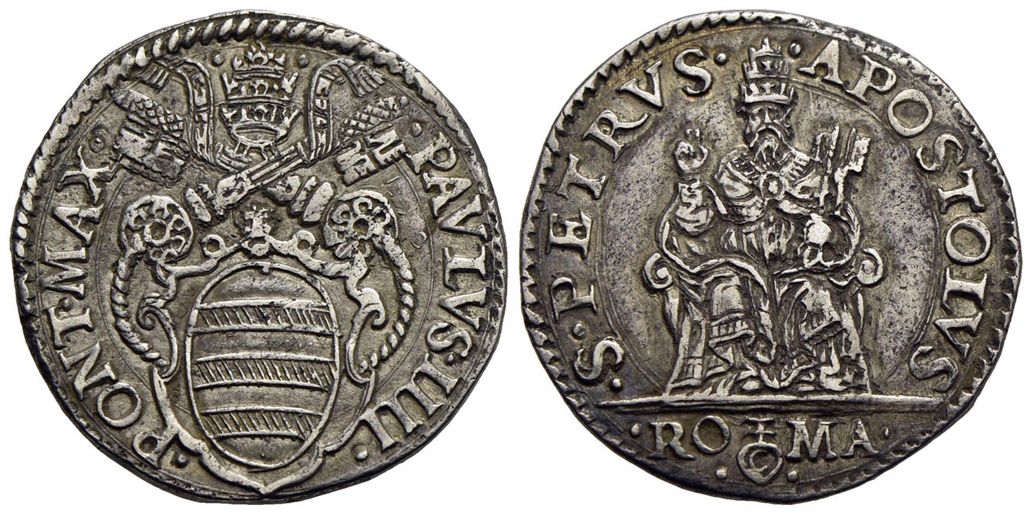 ROMA - Paolo IV (1555-1559) - Testone - Stemma sormontato da tiara e chiavi decussate - R/ San Pietro in trono con triregno - (AG g. 9,53) CNI 45; Munt. 7 Ex Asta Ratto