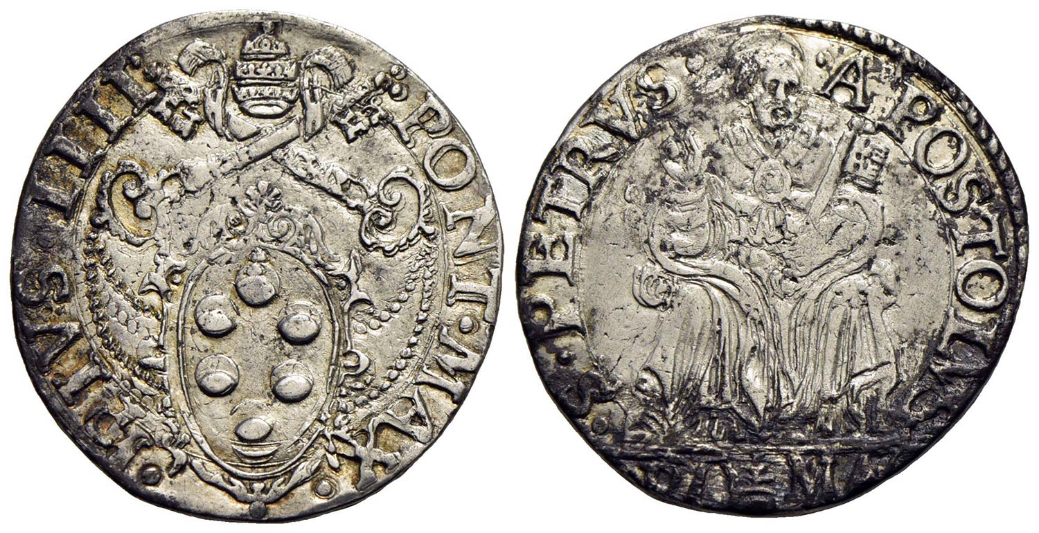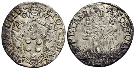 ROMA - Pio IV (1559-1566) - Testone - Stemma a targa poligonale - R/ Il Santo nimbato in trono a testa nuda - (AG g. 8,26) Ser. 59; Munt. 7