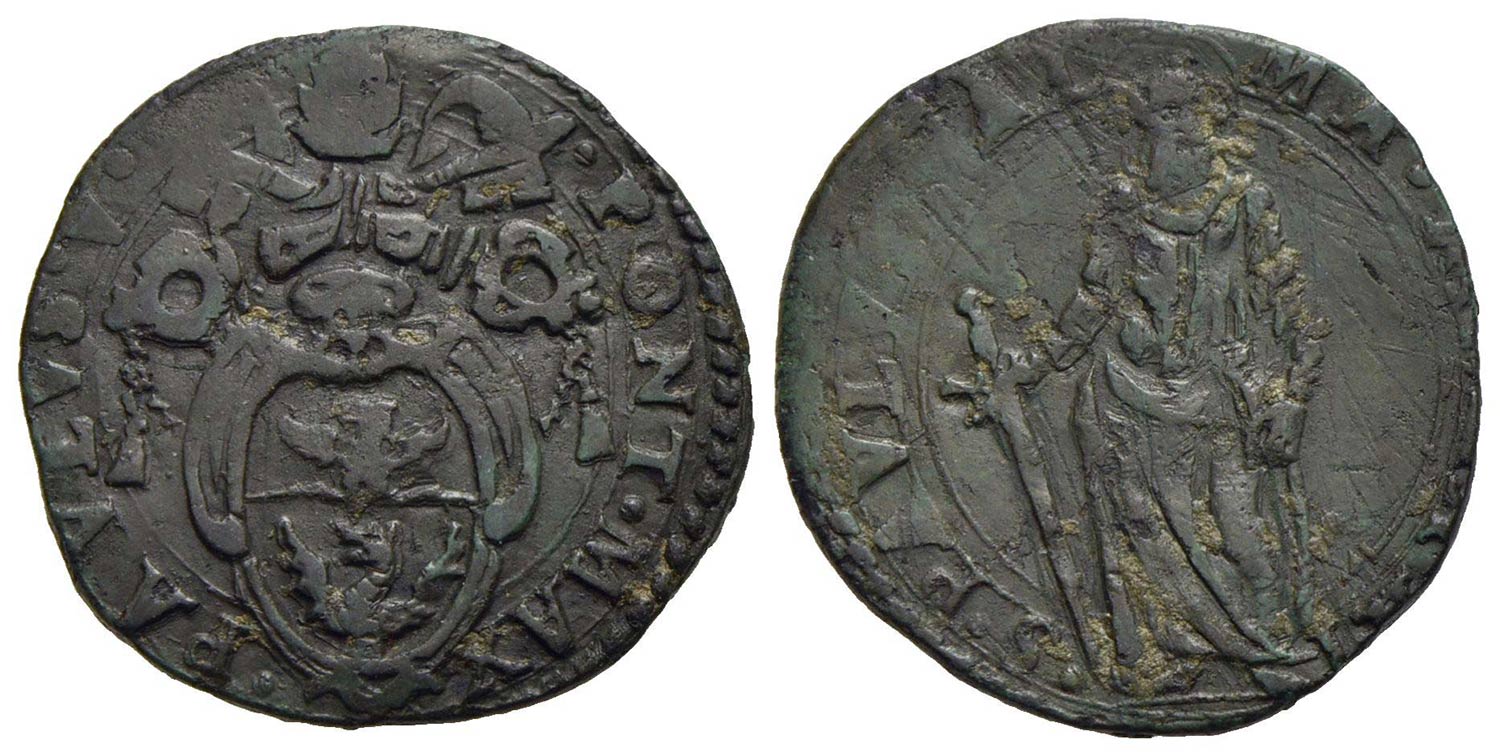 ROMA - Paolo V (1605-1621) - Quattrino - Stemma a targa sagomata - R/ San Paolo con spada - (CU g. 3,45) R CNI 668; Munt. 145 simile Ex Asta Ratto 1962