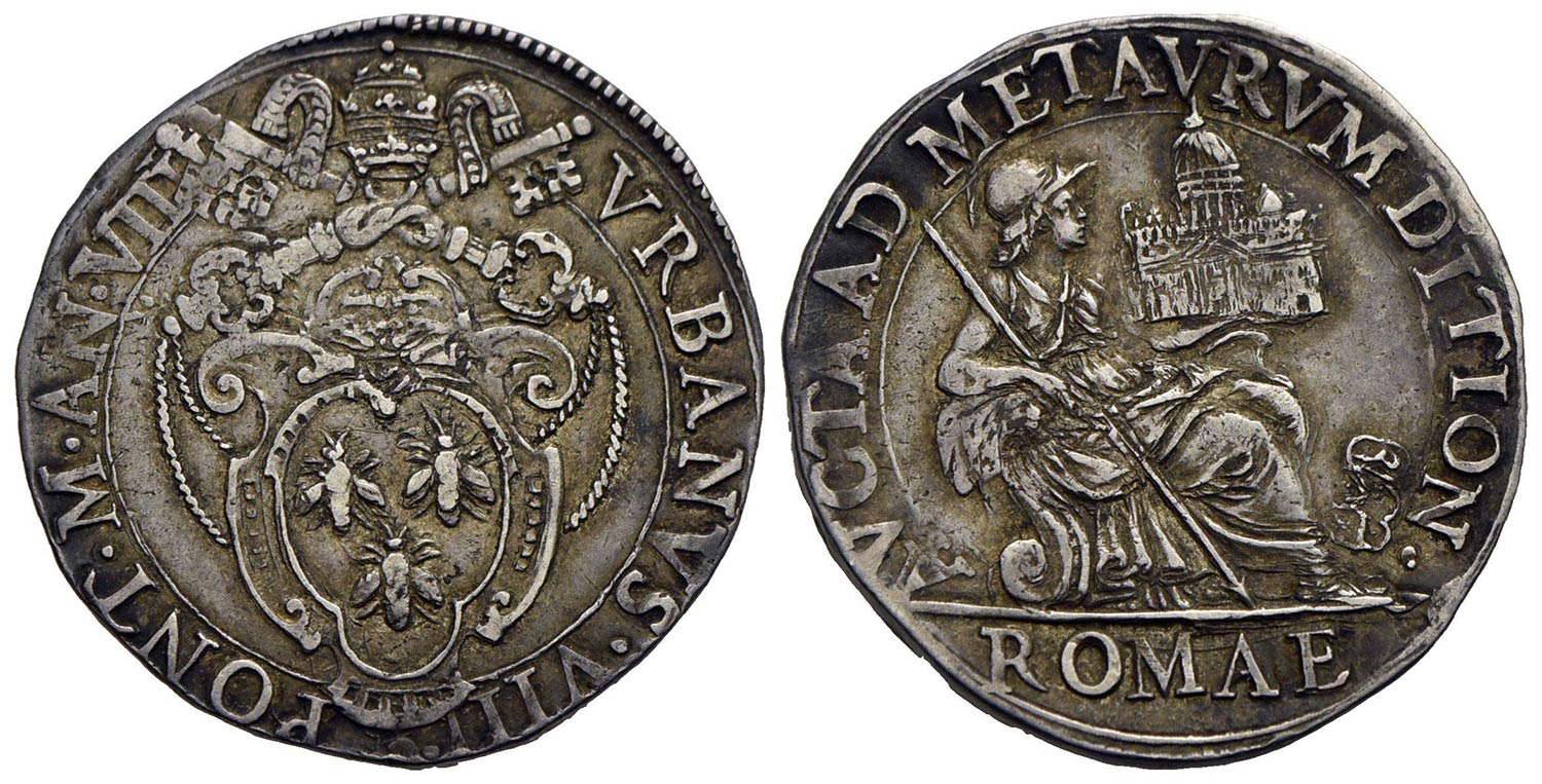 ROMA - Urbano VIII (1623-1644) - Testone - A. VIII - Stemma sormontato da tiara e chiavi decussate -